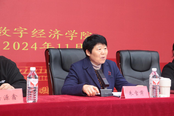 高强、张衡分别宣读2023-2024学年数字经济学学院学业奖学金、德育奖学金获奖情况,并为获奖代表颁奖。随后,国家奖学金获得者刘曼婷同学发言。