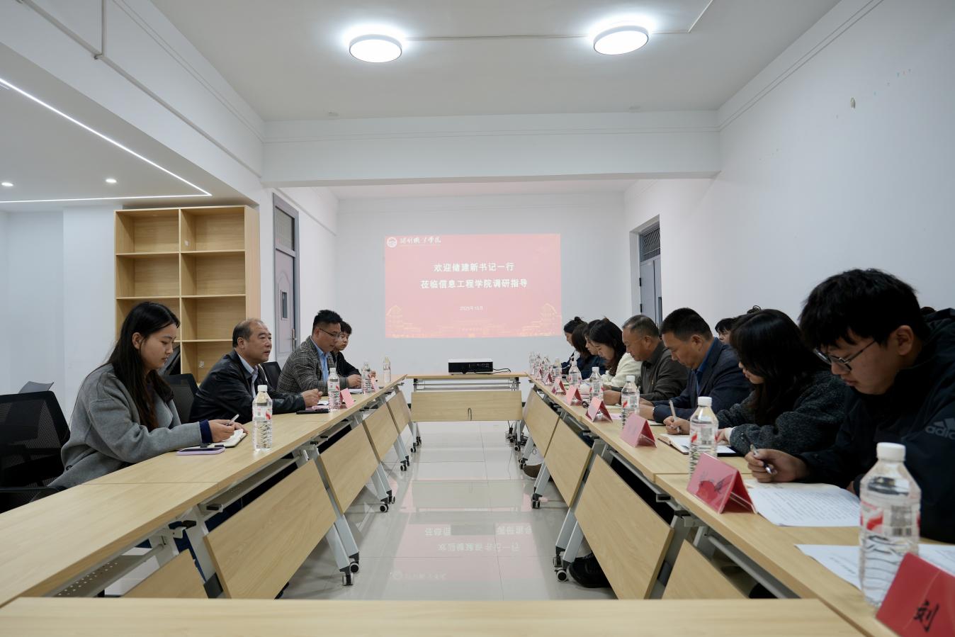 10月16日下午,校党委书记储建新一行莅临信息工程学院调研指导并召开座谈会。学院党总支书记、院长张东生,党总支副书记、副院长张成文及全体党员教师参加此次座谈会。会议由校党委委员、组织(统战)部部长高云龙主持。