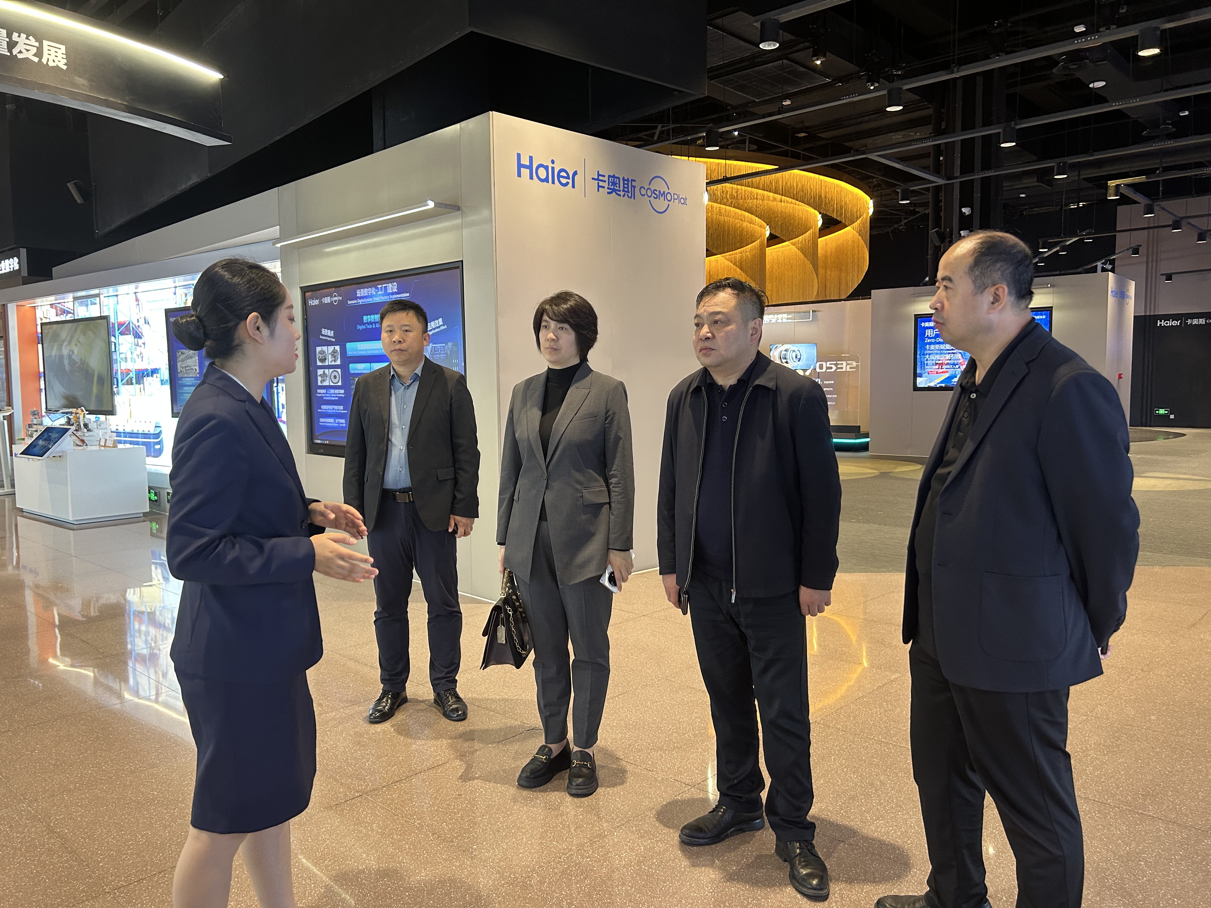 会前,徐仲昆一行参观了海尔卡奥斯生态展和海尔文化展,调研了海尔推动产业数字化转型发展情况,了解海尔的创业史和创新创业成果。