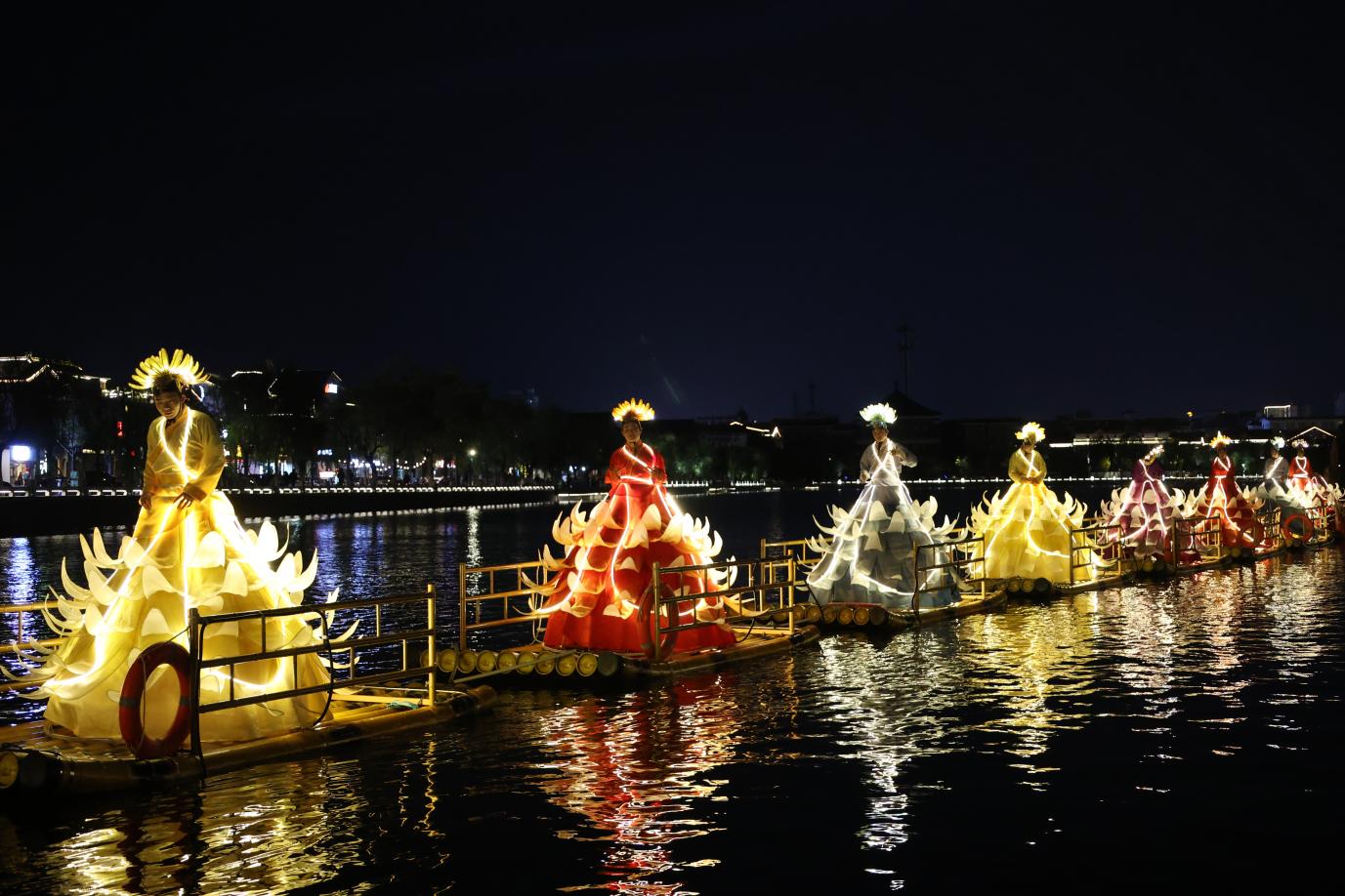 参演学生主要来自舞蹈表演(体育舞蹈)、空中乘务、民航安全技术管理等专业,他们在不同环节中展现了多元化的才能。主会场上,舞蹈表演专业学生参演了《菊秀·千古高风直到今》与《菊颂·又是一年菊花香》两支舞蹈,以优雅的肢体语言诠释菊花所承载的文化意蕴,再现宋风雅韵。在分会场节目《桨声花影·寻梦汴梁》中,学生们身着融合科技元素的“菊花仙子”服饰,乘龙舟沿汴河巡游,与沿岸游客亲切互动,营造出“东京梦华”的沉浸式体验,也体现出学院“文化+旅游+科技”的跨学科育人理念。此外,空中乘务专业学生身着宋式服饰,担任礼仪人员,负责引导嘉宾乘坐御舟前往主会场等接待任务。他们仪态端庄、服务周到,赢得了主办方和与会嘉宾的广泛好评,展现出学院在实践教学与岗位能力对接方面的成效。