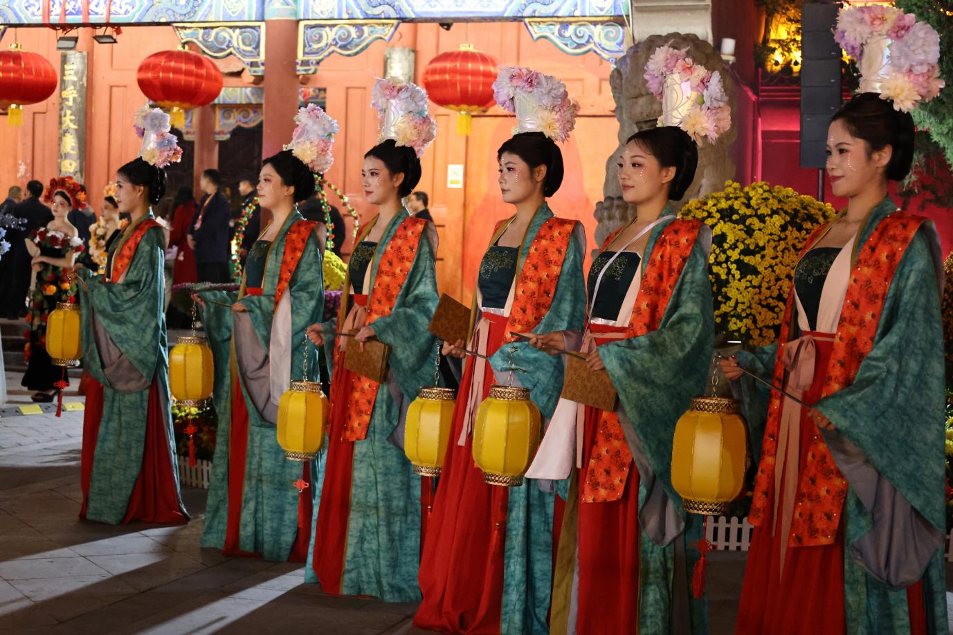 菊韵谱宋风,青春展芳华。10月18日,第十五届中国菊花展览会(中国开封第43届菊花文化节)在开封市龙亭景区启幕,展会以“菊韵宋风,大美中国”为主题,吸引了众多游客与嘉宾前来参观。文化旅游学院选派80名学生参与开幕式及相关活动,他们以扎实的专业能力和饱满的精神面貌,在主会场表演、分会场互动及礼仪接待等多个环节中表现出色,成为活动中一抹亮眼的青春色彩。