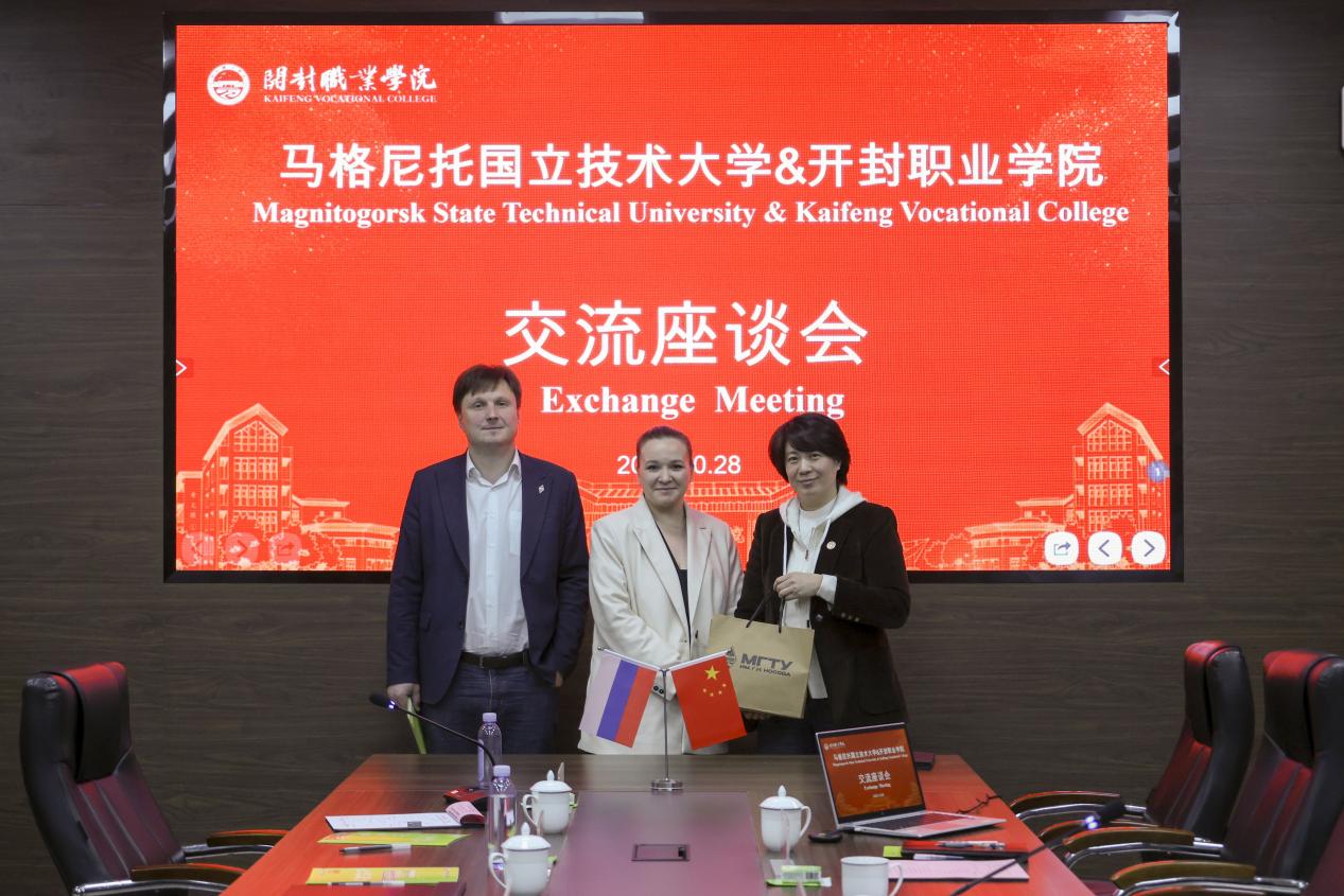 10月28日下午,俄罗斯马格尼托戈尔斯克国立技术大学副校长鲁班・康斯坦丁・阿列克谢耶维奇、副校长尼库林娜・塔季扬娜・列昂尼多夫娜、国际处处长戈罗维・斯坦尼斯拉夫・伊戈列维奇,以及河南省现代文化发展中心主任李殿广等嘉宾到我校访问交流,并在毕昇楼三楼会议室召开座谈会,我校执行校长刘珊珊以及相关部门负责人陪同参观并进行座谈交流。会议由国际交流中心主任张清芳主持。
