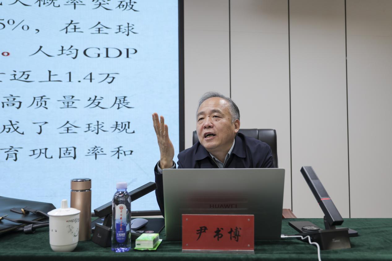 尹书博在题为《确保基本实现社会主义现代化取得决定性进展的行动纲领》的报告中,系统解读了党的二十届四中全会精神与《中共中央关于制定国民经济和社会发展第十五个五年规划的建议》的核心内容。他指出,“十四五”时期我国顶住复杂的内外挑战,实现经济实力、科技实力、综合国力显著跃升,建成全球规模最大的教育、社保、医疗体系,为新征程筑牢了发展根基。尹书博强调,“十五五”时期是基本实现社会主义现代化的关键阶段,需锚定高质量发展、科技自立自强、深化改革等七大主要目标,聚焦现代化产业体系建设、科技创新与产业融合、深层次改革与高水平开放、共同富裕推进等重点任务,同时要以习近平新时代中国特色社会主义思想为指引,坚持党中央集中统一领导,发扬斗争精神、实干精神,将规划蓝图转化为实际成效,确保基本实现社会主义现代化取得决定性进展。