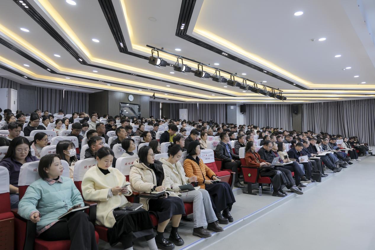 为深入学习贯彻党的二十届四中全会精神,引导广大干部师生深刻领会全会的精神实质和丰富内涵,以钉钉子精神抓好各项改革任务落地落实,11月18日下午,党委理论学习中心组2025年第五次(扩大)学习会暨学习贯彻党的二十届四中全会精神专题报告会在毕昇楼报告厅召开,会议特邀省委宣传部原副部长、一级巡视员尹书博教授莅校作报告。校党委书记储建新、校长徐仲昆等校领导及全校教职工参会,会议由校党委书记储建新主持。