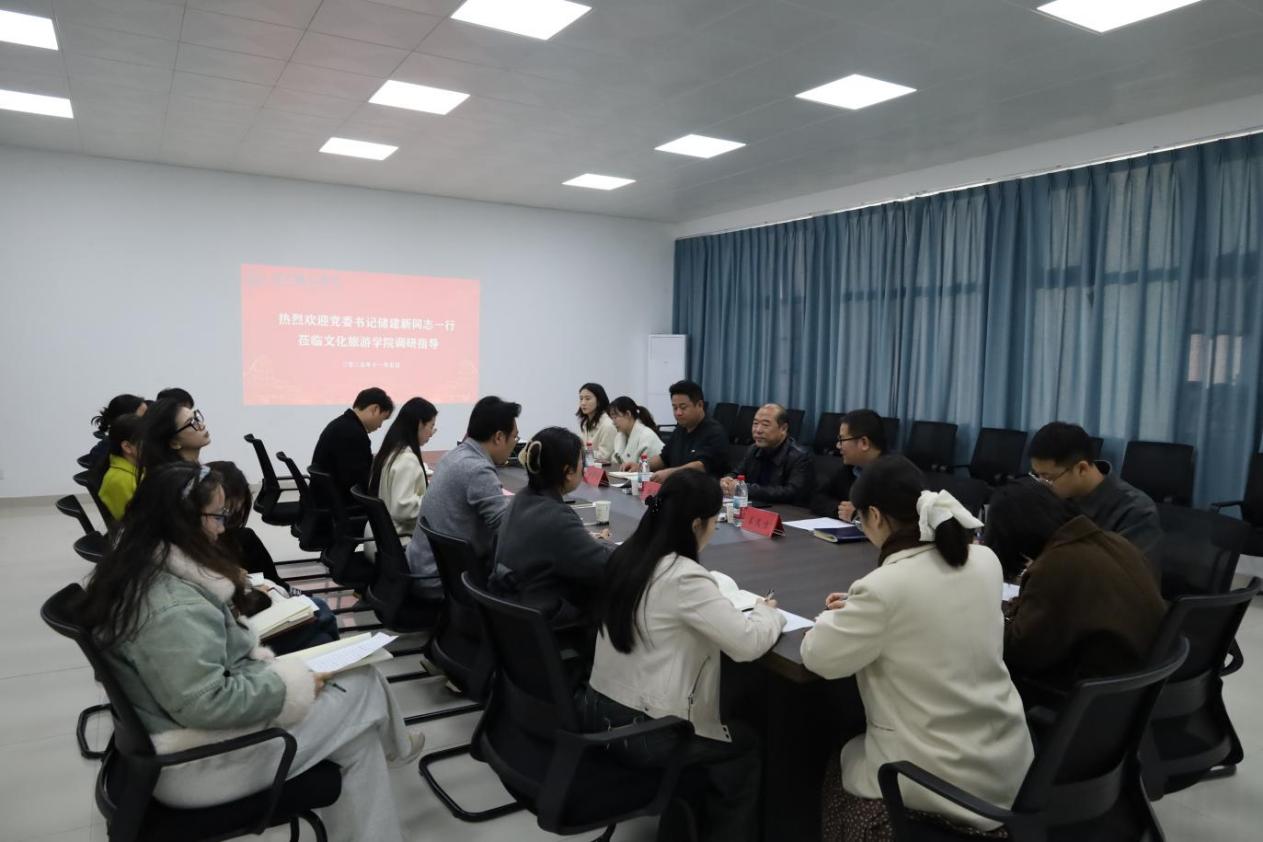 11月5日下午,校党委书记储建新赴文化旅游学院调研指导工作,并在明仲楼207会议室主持召开座谈会。文化旅游学院党总支书记、院长王松及学院全体教职工参加会议。会议由党政办公室主任王文方主持。