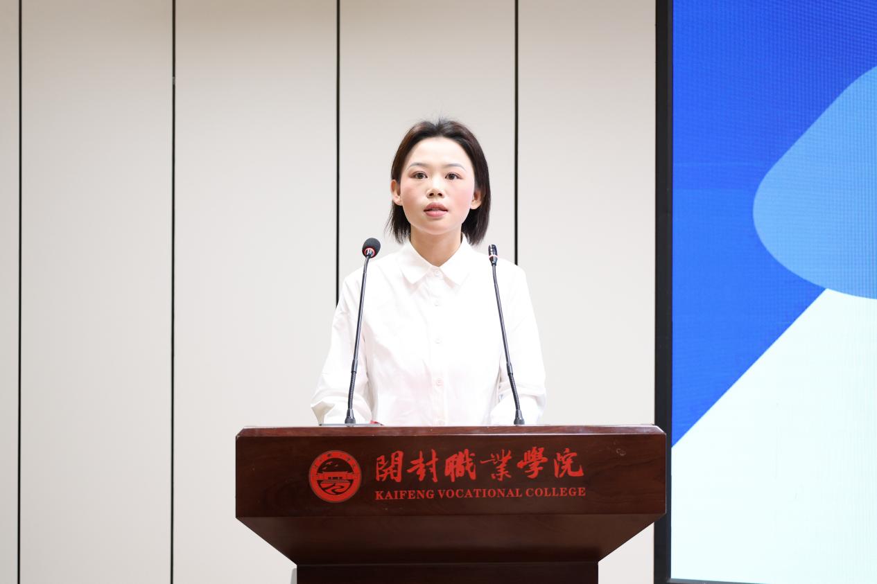 学生代表胡子含分享了自己的往届备赛参赛经历,并鼓励同学们以赛砺心,在备赛中梳理人生方向,在比拼中锤炼过硬本领。