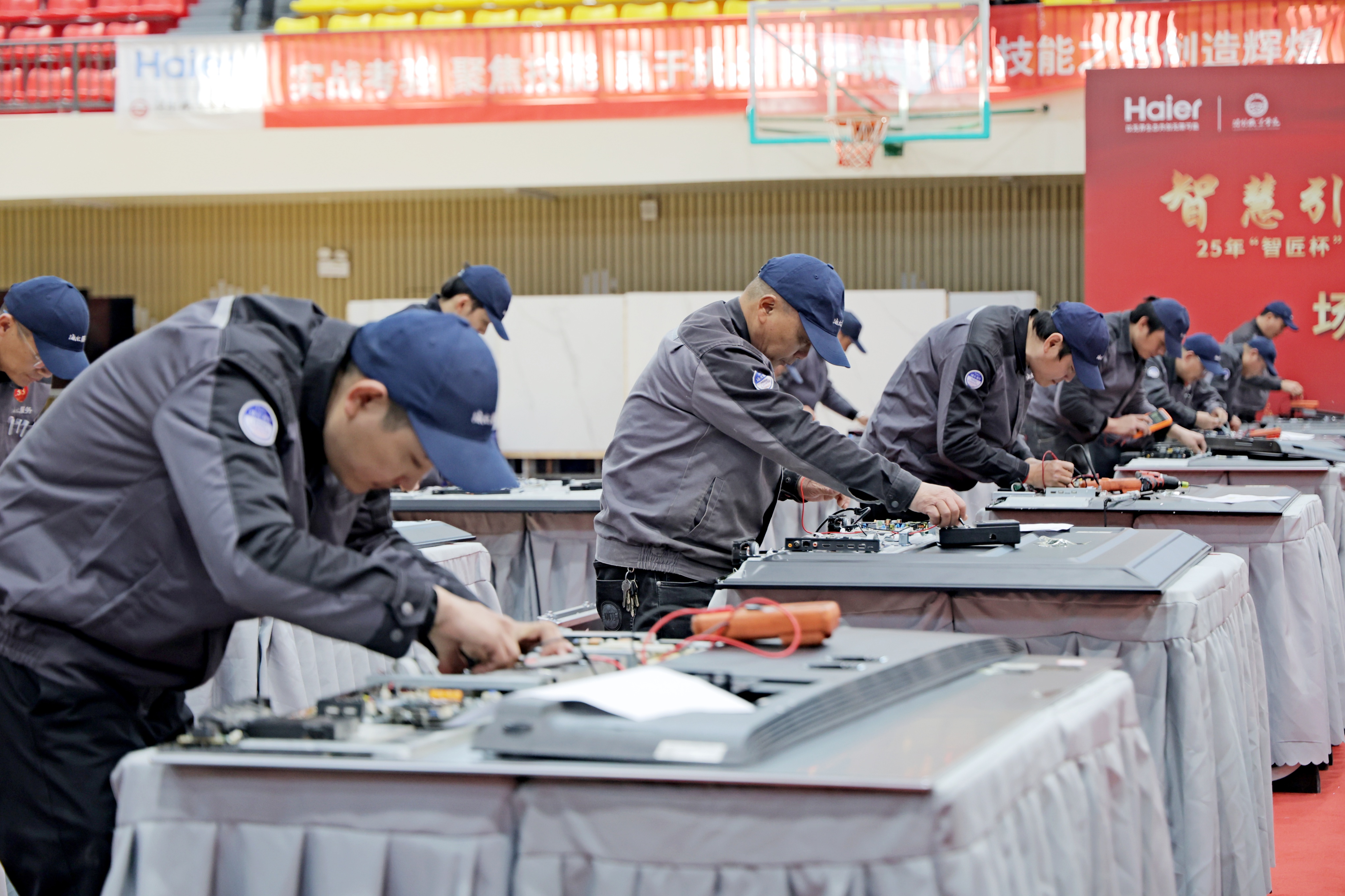 根据安排,本次决赛聚焦实操能力与应急处置素养,设置了多种材质打孔、实机检修、吊机实操等核心项目,还有“挑战不可能”的特色环节,通过模拟真实用户家中的复杂疑难场景,全方位考验参赛选手的专业技能、临场应变与服务意识。比赛现场,选手们凝神聚力、精益求精,熟练运用专业工具完成各项操作,精准排查设备故障,充分展现了新时代技能人才的精湛技艺与工匠精神。