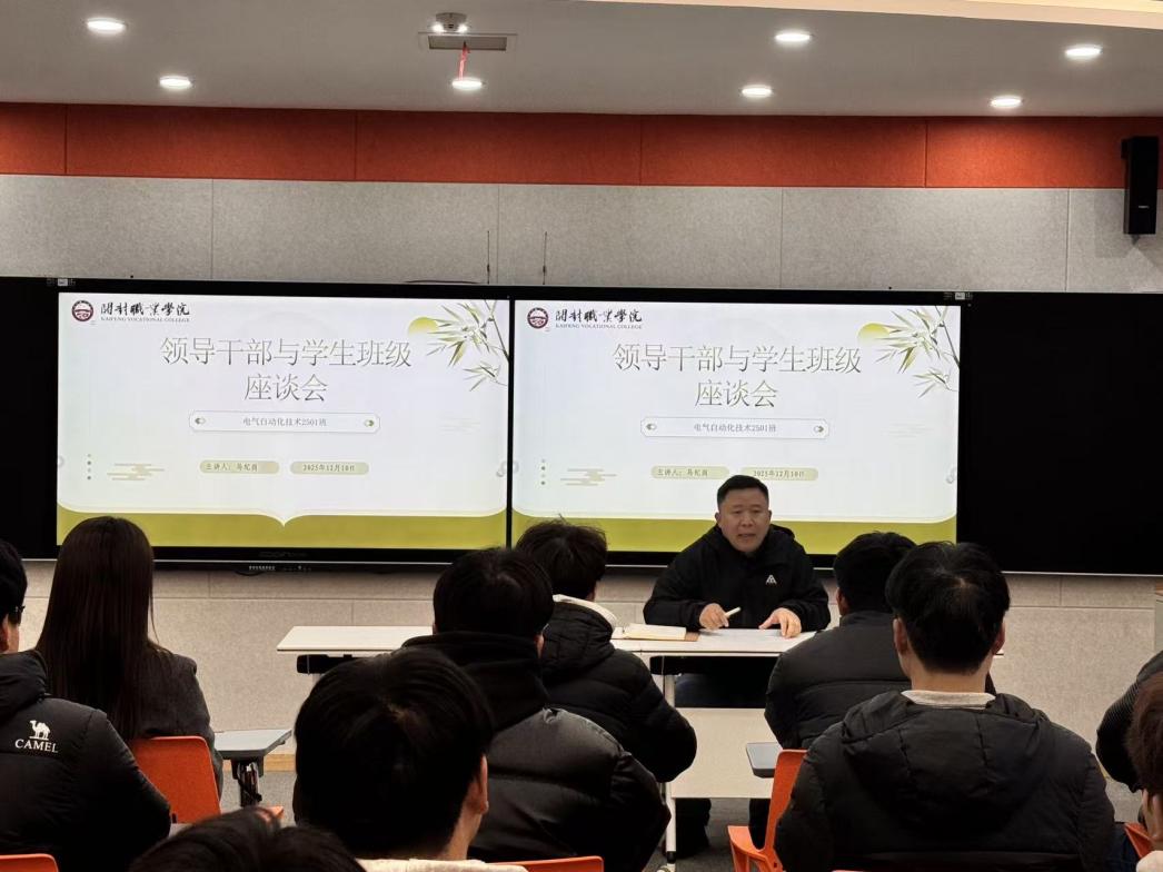 为深入贯彻落实立德树人根本任务,切实推动各级领导干部认真履行办学治校、育人育才的政治责任与领导职责,12月10日上午,校党委副书记、副校长、智能制造学院党总支书记马纪岗深入电气自动化技术2501班,在毕昇楼216召开座谈会。