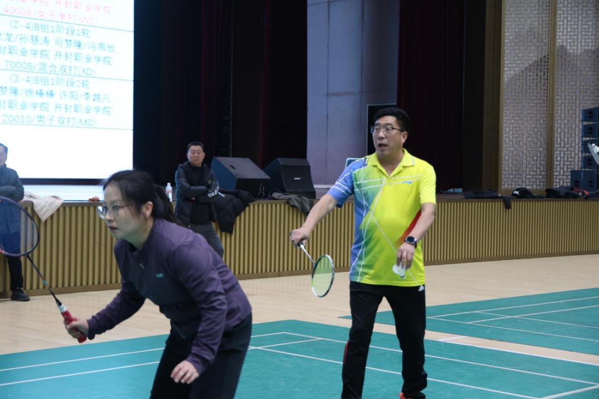 12月24日晚,由校工会主办、体育部协办的开封职业学院第一届教职工羽毛球比赛在铁宏体育馆顺利收官。