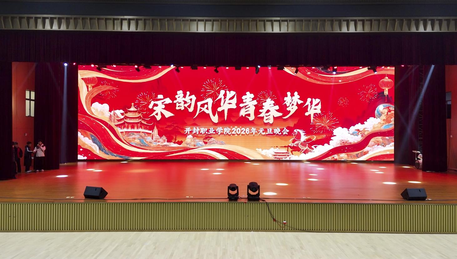 汴梁辞旧岁,灯火映青春。12月30日晚,开封职业学院2026年“宋韵风华·青春梦华”元旦晚会在铁宏体育馆温情上演。执行校长刘珊珊等校领导班子与全体师生欢聚一堂,以歌舞寄情、以光影传意,共同迎接崭新的2026年。