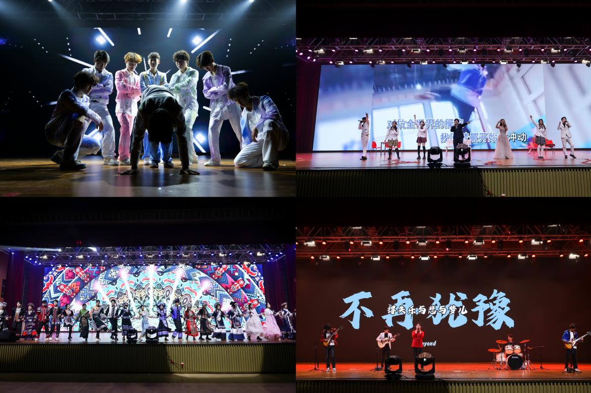 整场晚会以“筑梦·步履生花”“融梦·潮涌星河”“圆梦·风华正茂”三个篇章串联,涵盖歌舞、走秀、乐队演奏等多种形式,将宋韵文化与青年学子的青春活力深度融合。在场师生在《飞云之下》的温柔旋律中守住心中灯塔、奔赴前路繁花。《跃动新元》的刚劲舞姿展现了武道与健美的碰撞,《Like Jennie》以动感节奏诠释了青年的时尚态度;《新团队》用动感舞步展现青春热血与团队凝聚力,《民族霓裳》走秀用绚丽服饰铺展民族文化底蕴,《青春四重奏》以多元曲风唱响青春百态,五弦乐队演绎的《不再犹豫》则以现场演奏的鲜活力量点燃全场热情;《罗马假日》的浪漫舞步、《我相信》的铿锵歌声,共同谱写了圆梦时刻的青春华章,充分展现了开职学子的多才多艺与团结奋进的精神风貌。