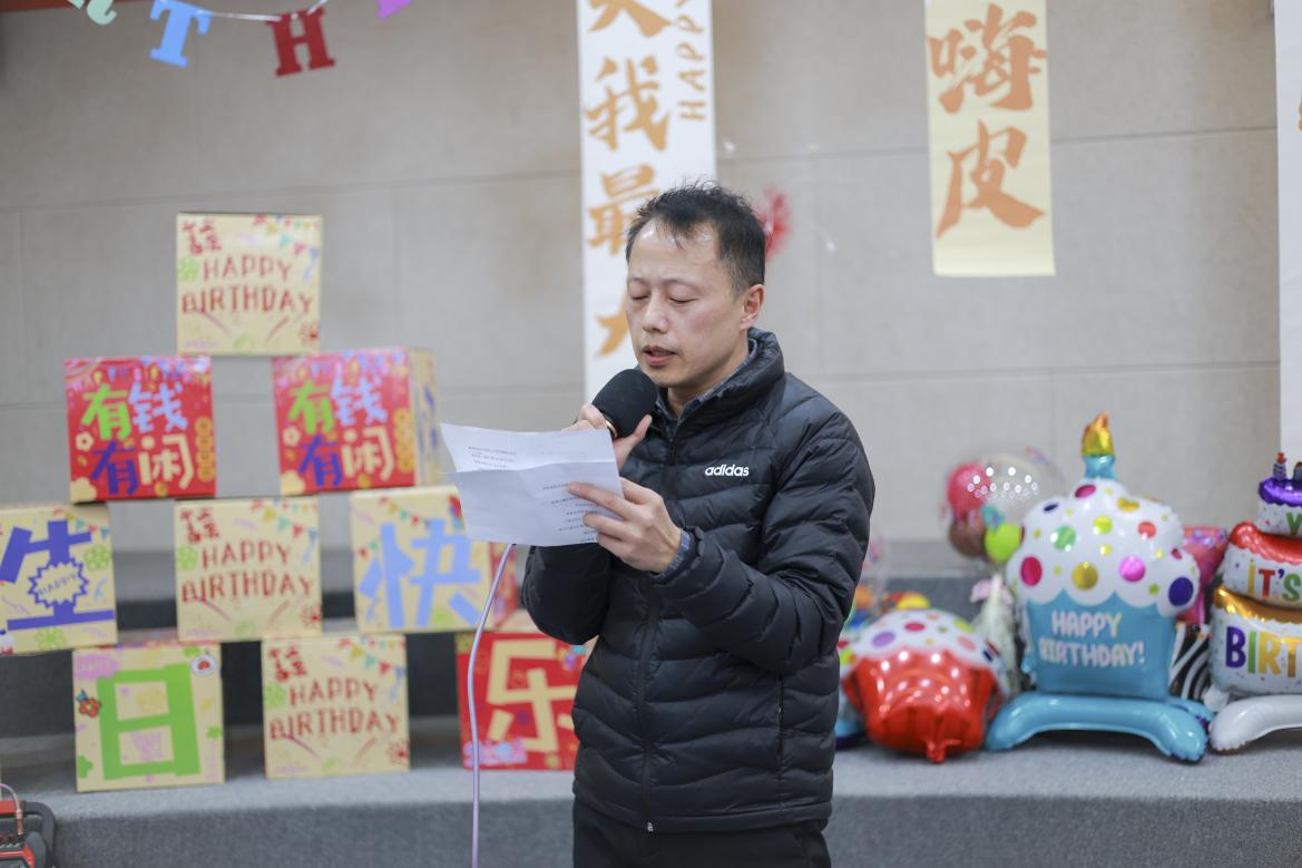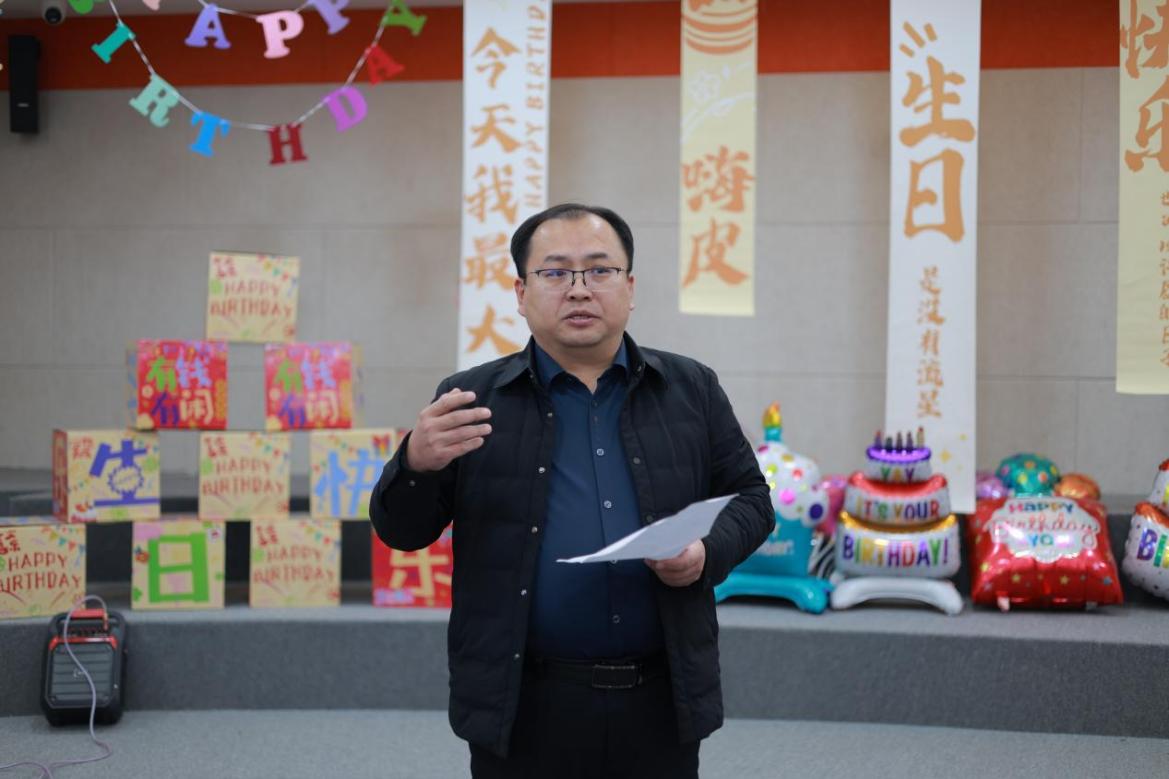 人事处处长李刚在致辞中代表学校向全体十二月生日的教职工致以诚挚的生日祝福和美好的新年期许。他指出,每月一度的集体生日会已成为我校落实“五个留人”管理理念和“教职工暖心三件事”的标志性品牌活动,是增强教职工凝聚力、向心力的具体举措。李刚强调,岁末年初的特殊节点,这场生日会既是对老师们一年来辛勤付出的由衷致谢,更承载着与大家携手奔赴温暖新程的美好愿景,愿这份关怀化作奋进力量,持续增强每一位开职人的归属感与幸福感。