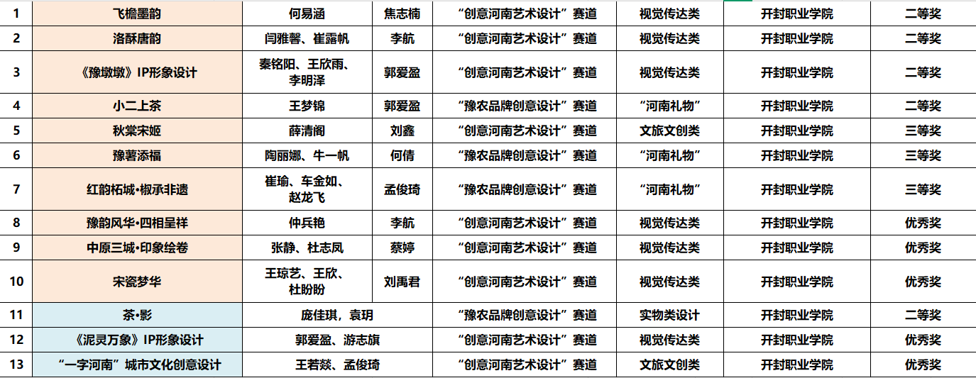 近日,由河南省教育厅主办的第五届“创意河南”艺术设计大赛圆满落幕。文化旅游学院师生凭借深厚的专业素养、创新的设计理念与对河南地域文化的深刻诠释,在这场全省高校设计类权威赛事中表现亮眼,共斩获奖项13项。