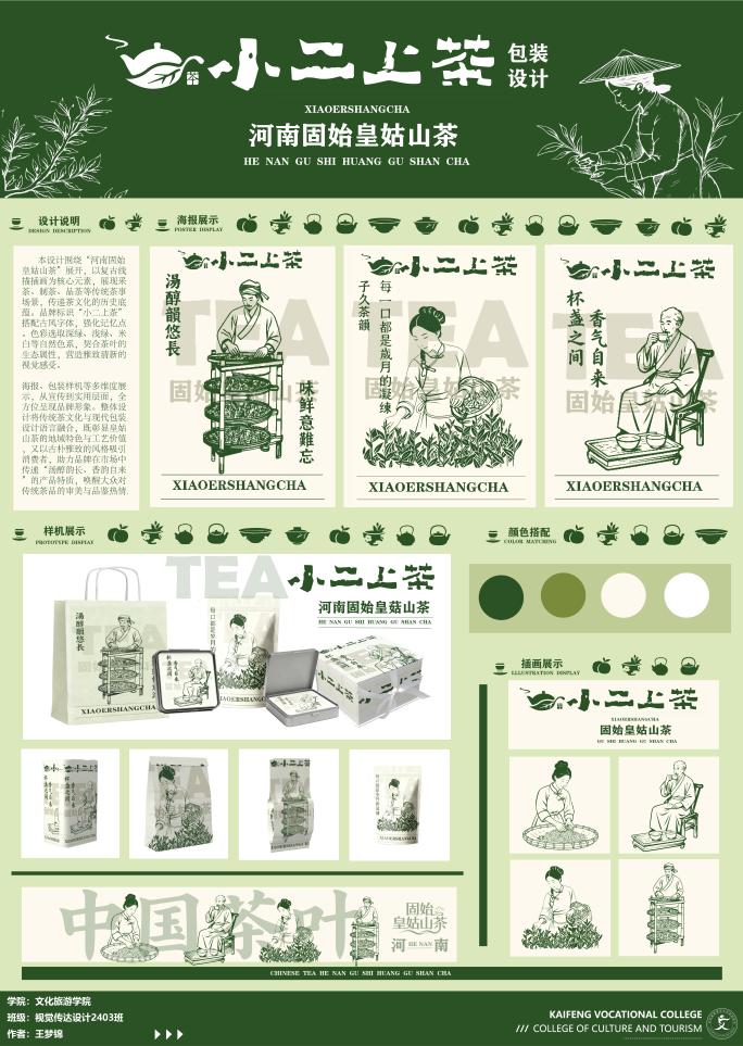 获奖作品范例:《小二上茶》——视觉传达设计2403班王梦锦 郭爱盈指导