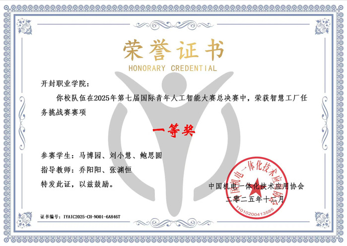 近日,第七届国际青年人工智能大赛圆满落下帷幕。我校师生凭借扎实的专业理论功底、娴熟的实操动手能力和高效的团队协作能力,在这场高规格全球性赛事中脱颖而出——在全国总决赛中摘得国家级一等奖1项、二等奖1项、三等奖1项;省级选拔阶段荣获一等奖1项、二等奖3项、三等奖4项,充分彰显了我校在人工智能领域的人才培养实力。