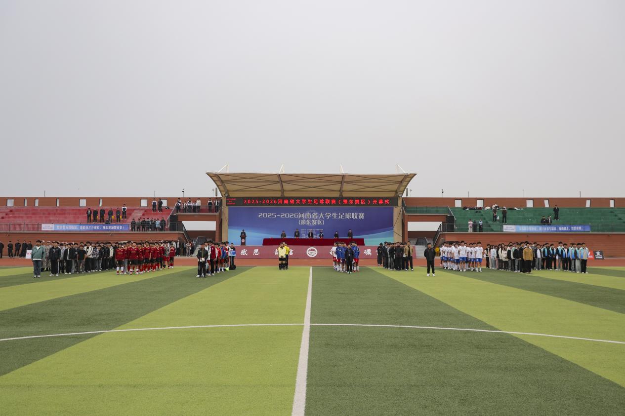 3月23日下午,由省教育厅、省体育局主办,我校承办的2025-2026河南省大学生足球联赛(豫东赛区)开幕式在学校南校区田径场顺利举行。联赛竞赛监督吴磊教授、裁判监督刘文忠教授,我校党委书记储建新,纪委书记、工会主席翟明君及学校相关部门负责人出席开幕式。开幕式由体育部主任陈鑫林主持。