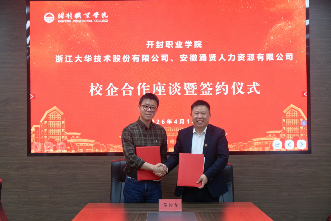 为进一步深化产教融合,推进校企协同育人,4月16日上午,我校在毕昇楼311会议室举行与浙江大华技术股份有限公司、安徽涌贤人力资源有限公司的校企合作座谈暨签约仪式。浙江大华技术股份有限公司人资部总监王潇、采购部总监李强,安徽涌贤人力资源有限公司总经理唐楠、市场部经理徐文婷,我校党委副书记、副校长马纪岗及相关部门负责人出席座谈会。会议由就业指导中心主任张东飞主持。